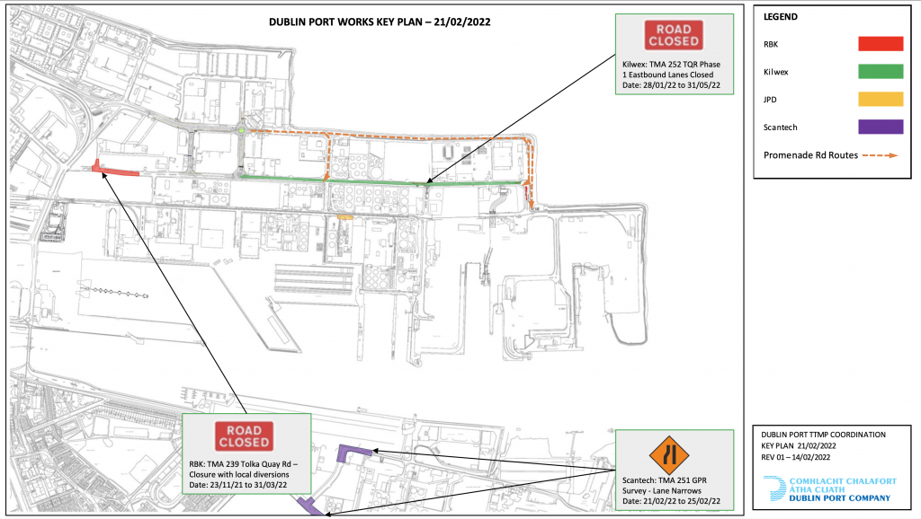 Dublin Port Temporary Traffic Management Plans – 14th February – 28th February 2022