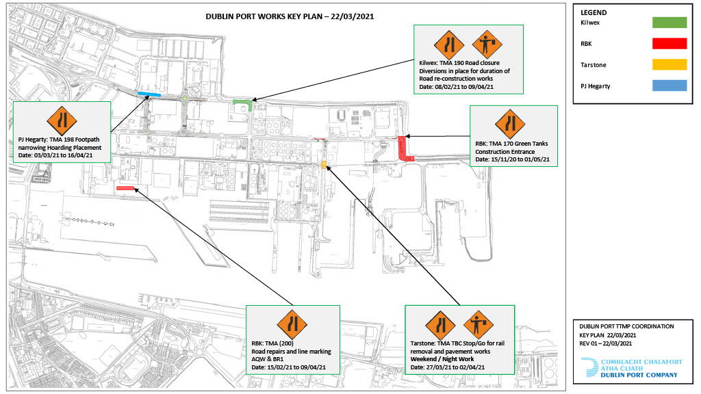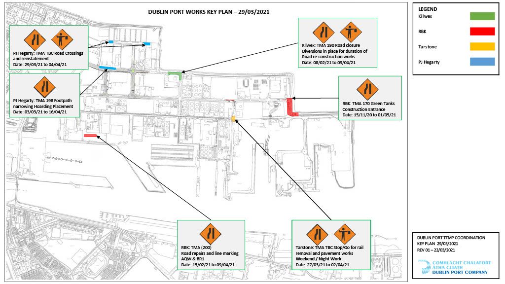 DUBLIN PORT WORKS KEY PLAN – Weeks 22nd of March to the 5th of April 2021