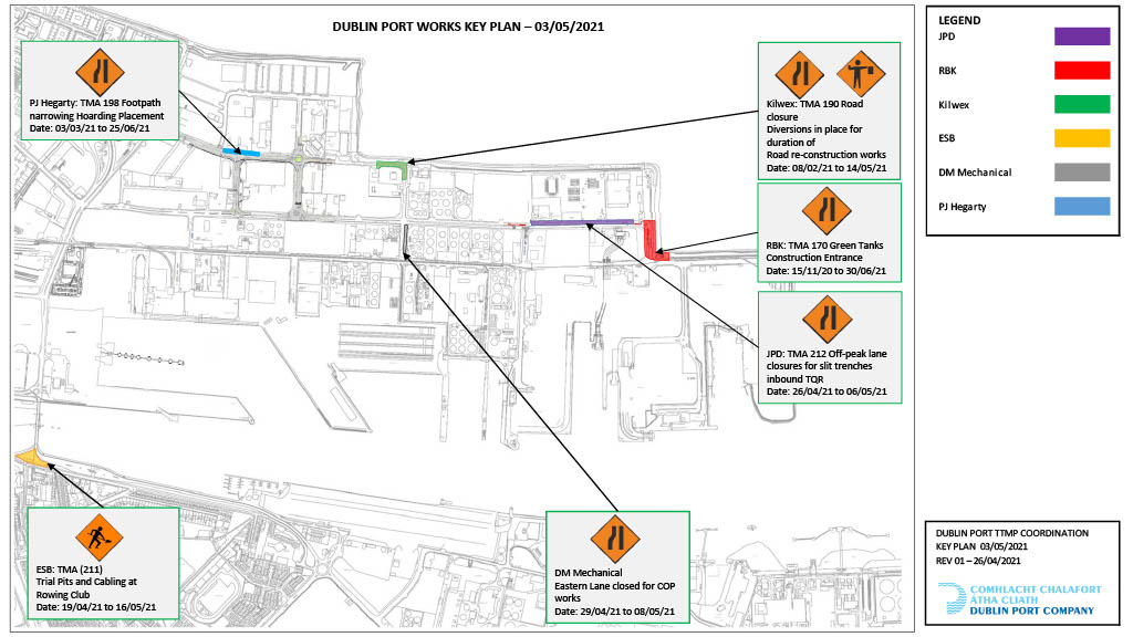 DUBLIN PORT WORKS KEY PLAN – Weeks 3rd to 17th May 2021